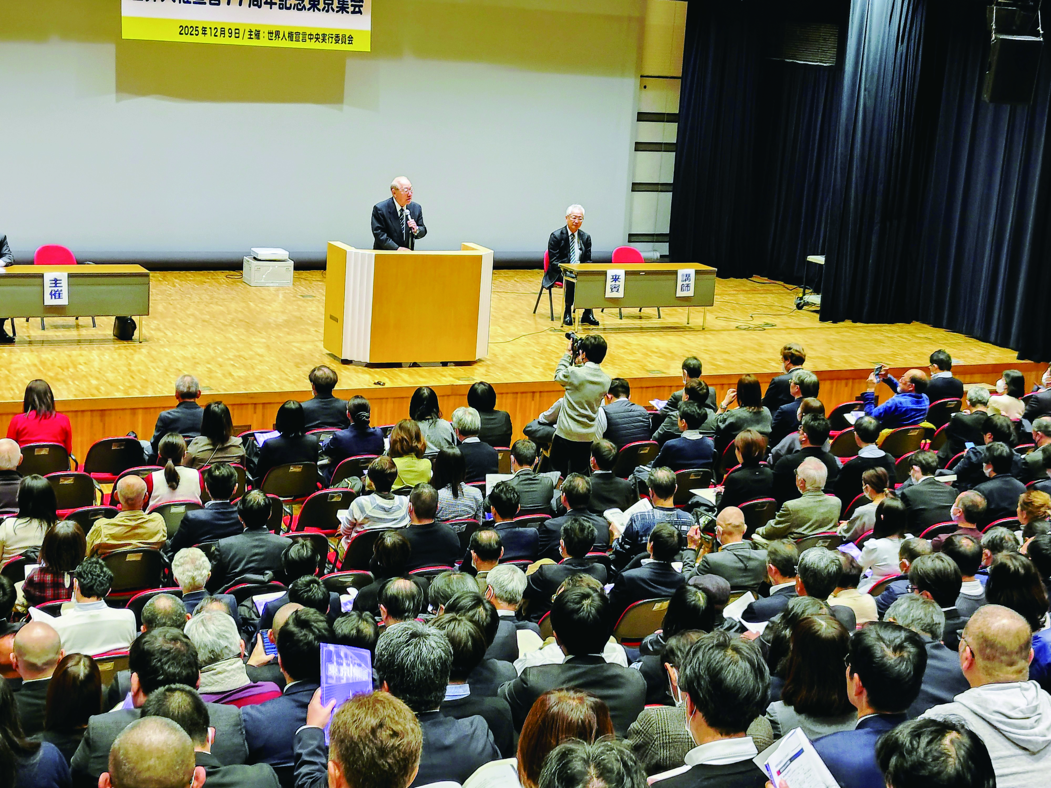 世界人権宣言77周年記念東京集会が、昨年12月9日午後、全電通労働会館で開かれ、426人が参加した。主催は、世界人権宣言中央実行委員会。