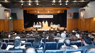 のDVDが上映された。そして、狭山弁護団の河村建夫弁護士が「狭山事件・新証拠と事実調べをめぐる動向と課題」とのテーマで報告がされた。河村弁護士は狭山事件の再審に自身が取り組むようになった経緯と狭山事件の事実経過を述べ、再審と証拠開示についてのポイントを説明し、証拠開示の成果について述べた。河村弁護士は証拠開示の成果として、1、証拠開示のインパクト、2、犯罪の「裏付け」証拠が存在しないことが裏付けられつつあること、3、開示された証拠は無罪の材料になることなどをあげた。そして、民衆の声を裁判所に届けようと呼びかけた。