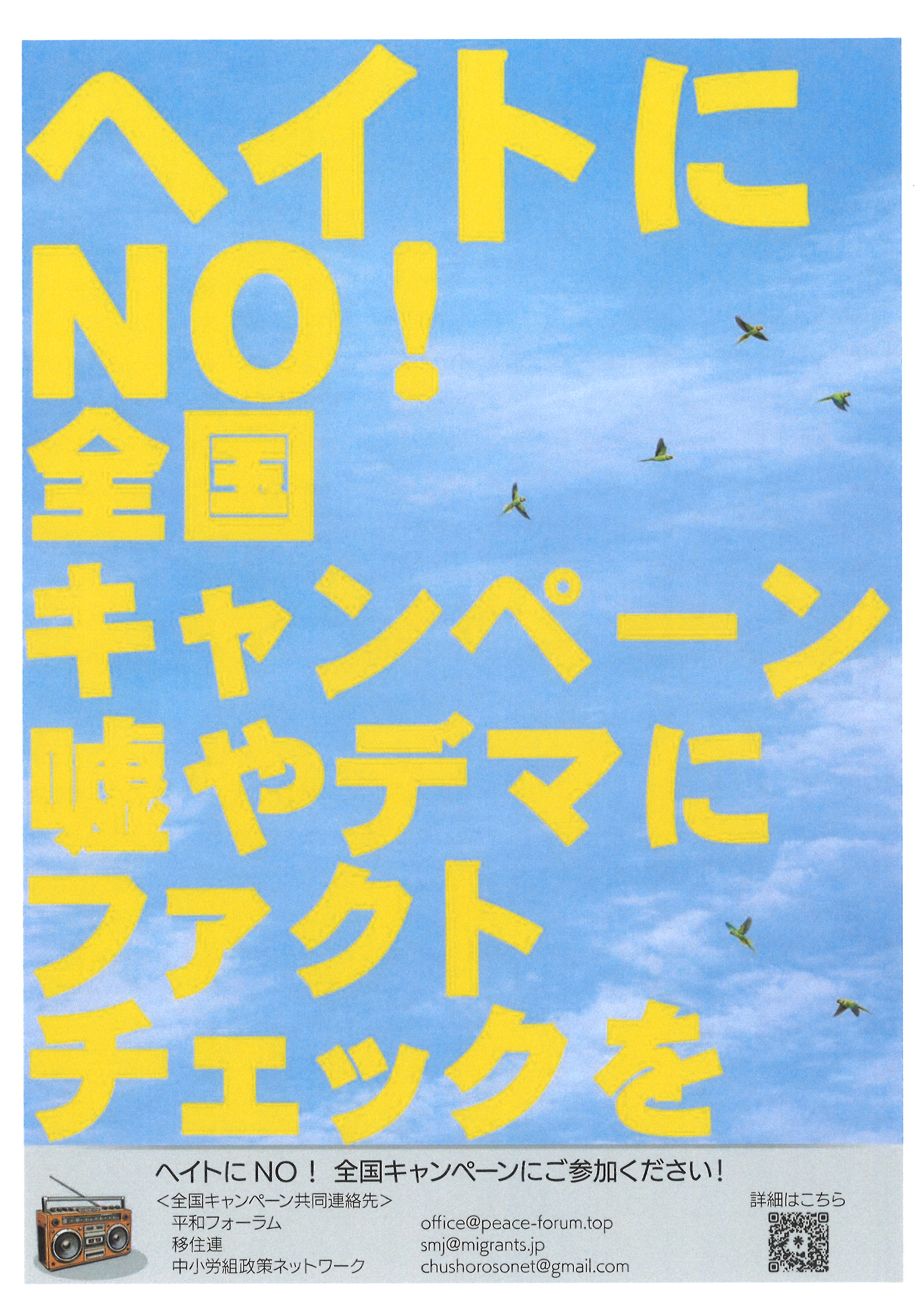 近年、選挙や政治活動において、外国人差別や排外主義を扇動する発言や政策が一部の政党や政治家からみられる傾向があります。特に昨年の参議院選挙 を前に「外国人優遇」「違法外国人ゼロ」「外国人排除」などを公約に掲げる政党が複数存在し、街頭演説やSNSなどで外国人を敵視する言説が広がっていま す。また、「外国人だから」と、住居の賃貸拒否や割高な家賃などの不利な条件設定や就職・アルバイト面接での不採用や不適切な対応も依然として報告さ れています。