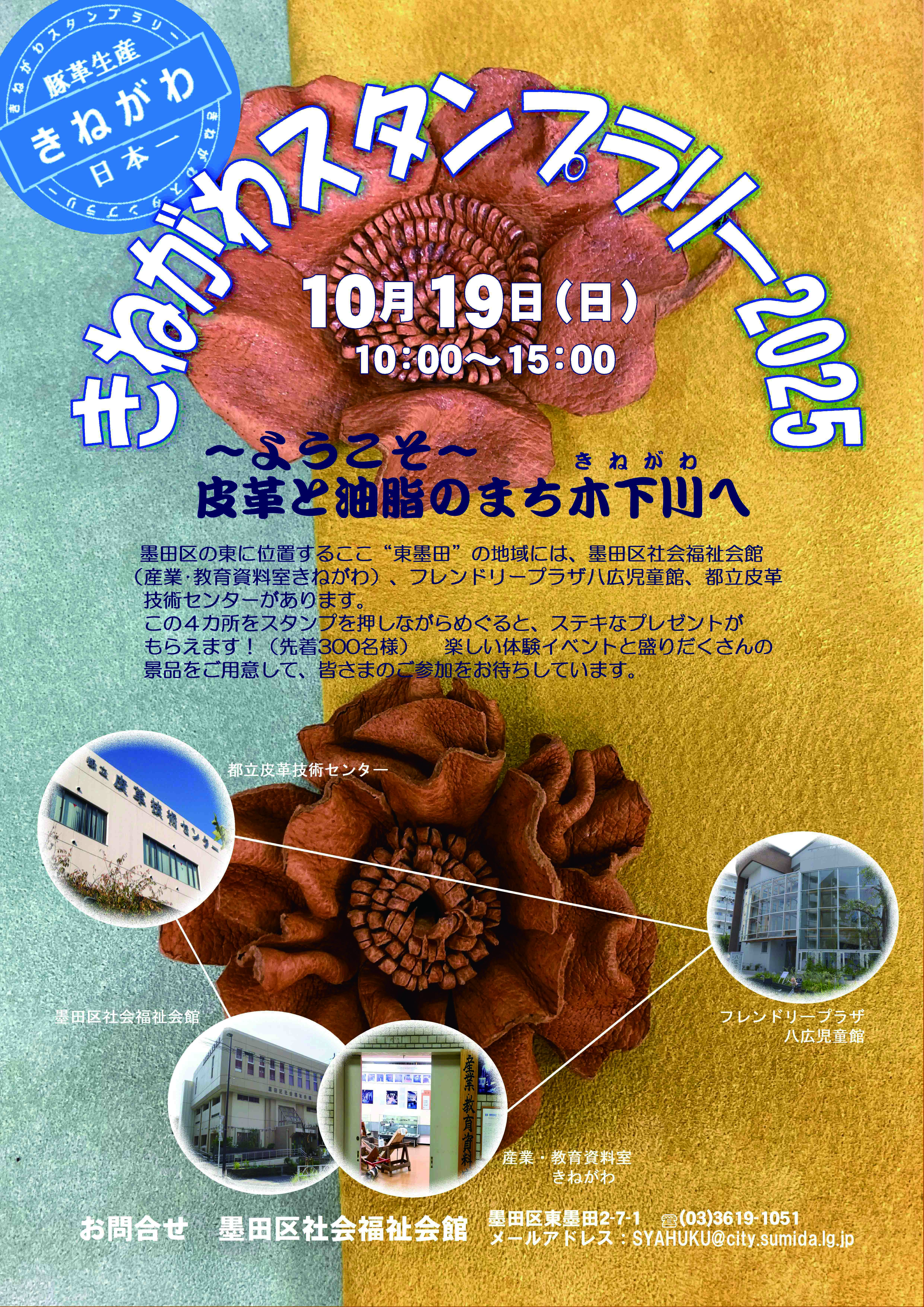 きねがわスタンプラリー2025が10月19日(日)10時~15時、墨田区社会福祉会館をメイン会場に開催される。