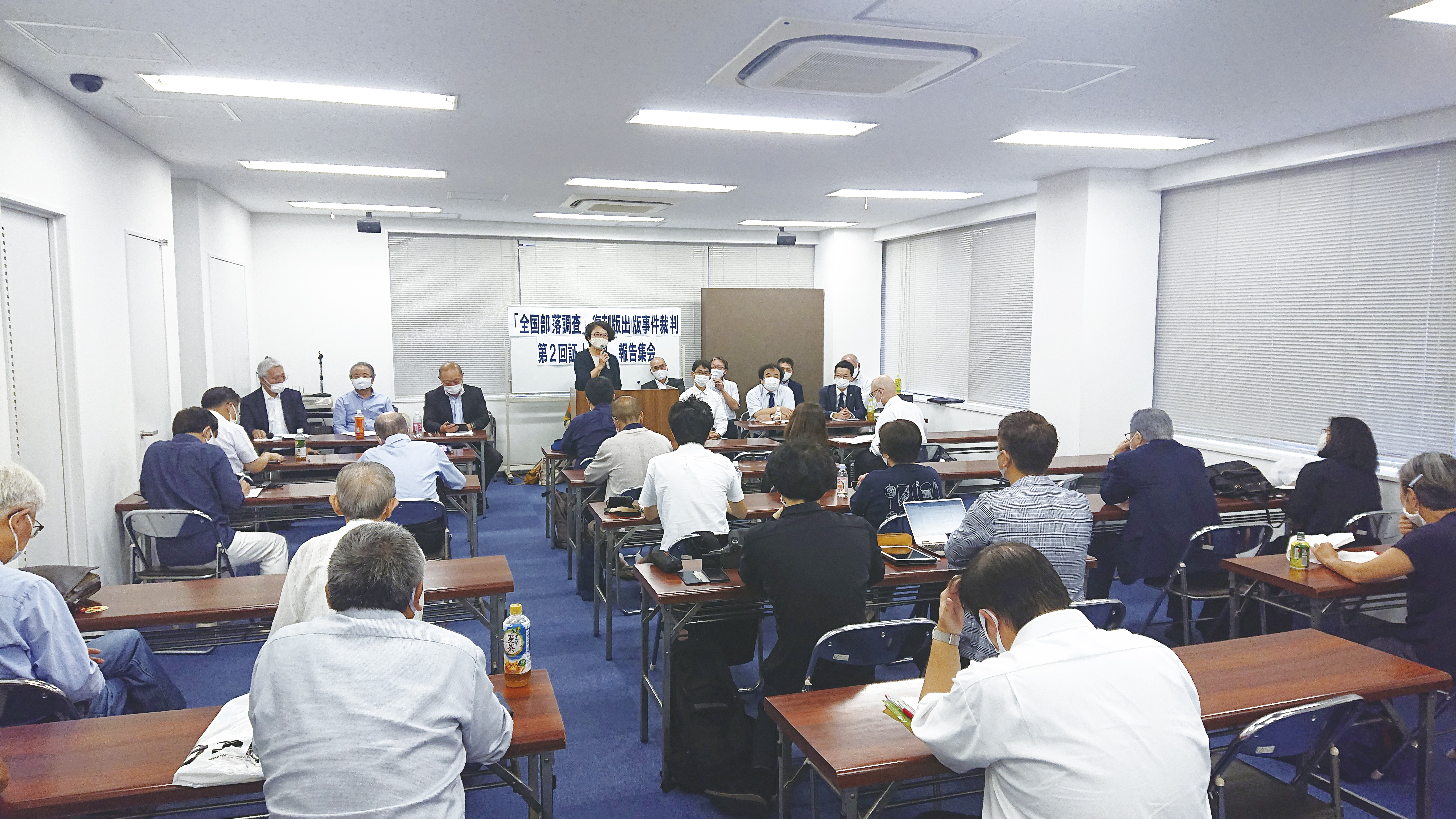 西島・中央書記長が「部落差別の現実をしっかりと訴えて裁判長が理解したうえで、横浜地裁相模原支部の判決を上回るような判決を出してもらいたい」と開会挨拶を行なった後、中井弁護士、山本弁護士、指宿弁護士、河村弁護士から弁護団報告が行なわれ、裁判の内容を共有した。