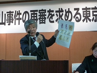 そして、脅迫状からは石川さんの指紋も痕跡もありませんでした。…(中略)… 当時「殺害現場」から20m程のところで農作業をし、「犯行時間」とされている時に、桑畑の桑の高さは1mもない中で、「殺害現場」とされている場所を何度も見たというOさん(84歳)の証人尋問を証拠保全という意味も含めて裁判所に求めています。そして、3月22日18時30分から教育会館で集会が開かれ、筆跡とOさん証言を中心とした中央本部作成のDVDを上映し、Oさんの証人尋問を求める大きな運動をしていきます。