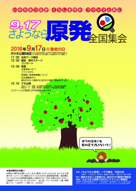 連絡先:さようなら原発1000万人アクション事務局。ホームページは「さようなら原発」で検索。