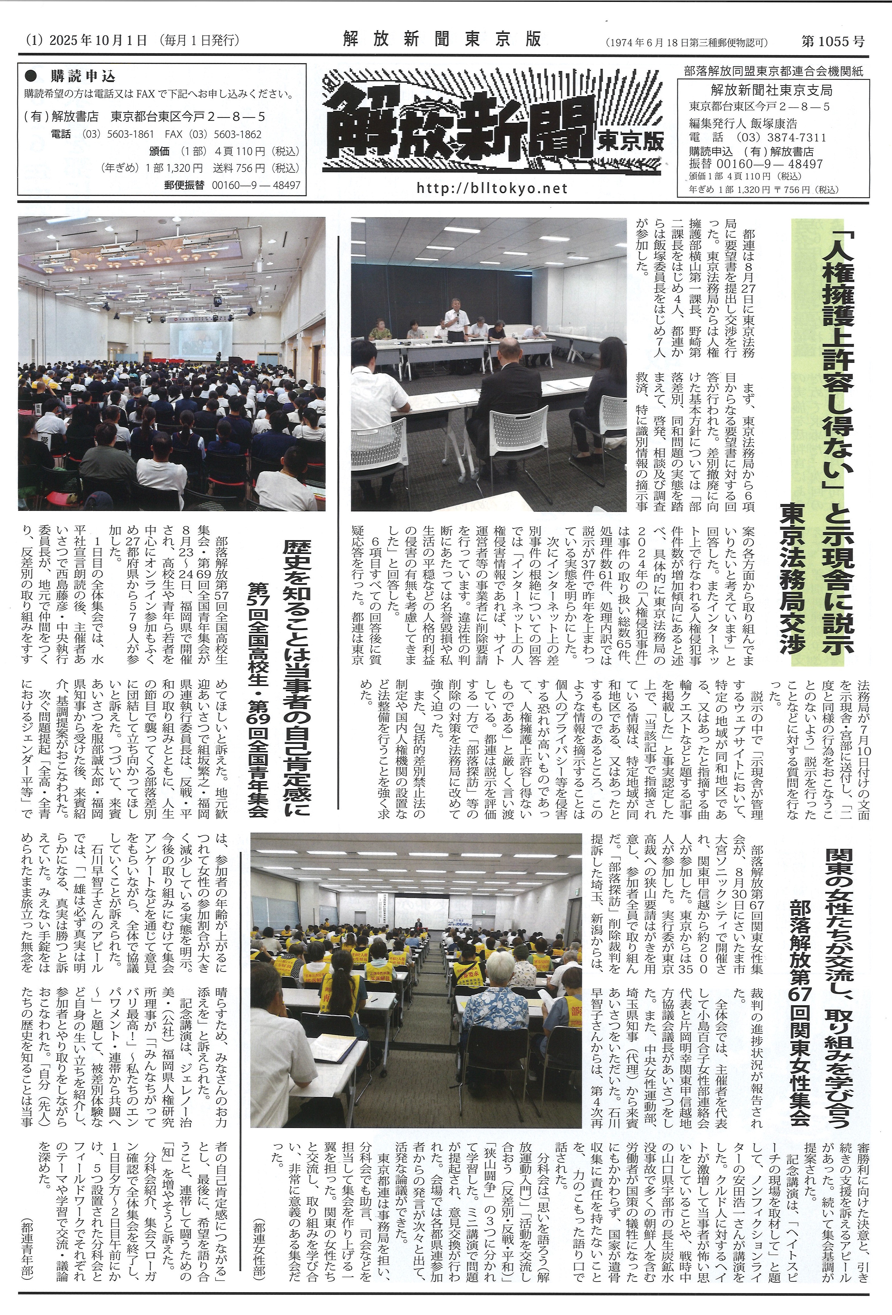 部落解放同盟東京都連合会の日々の取り組みを紹介しています。差別事件に対する取り組み、行政などへの要求や交渉、狭山事件の再審を求める取り組み、差別を許さない共闘、協働の取り組みなどを記載しています。ぜひ、東京での差別を許さない取り組みを知っていただければと思います。