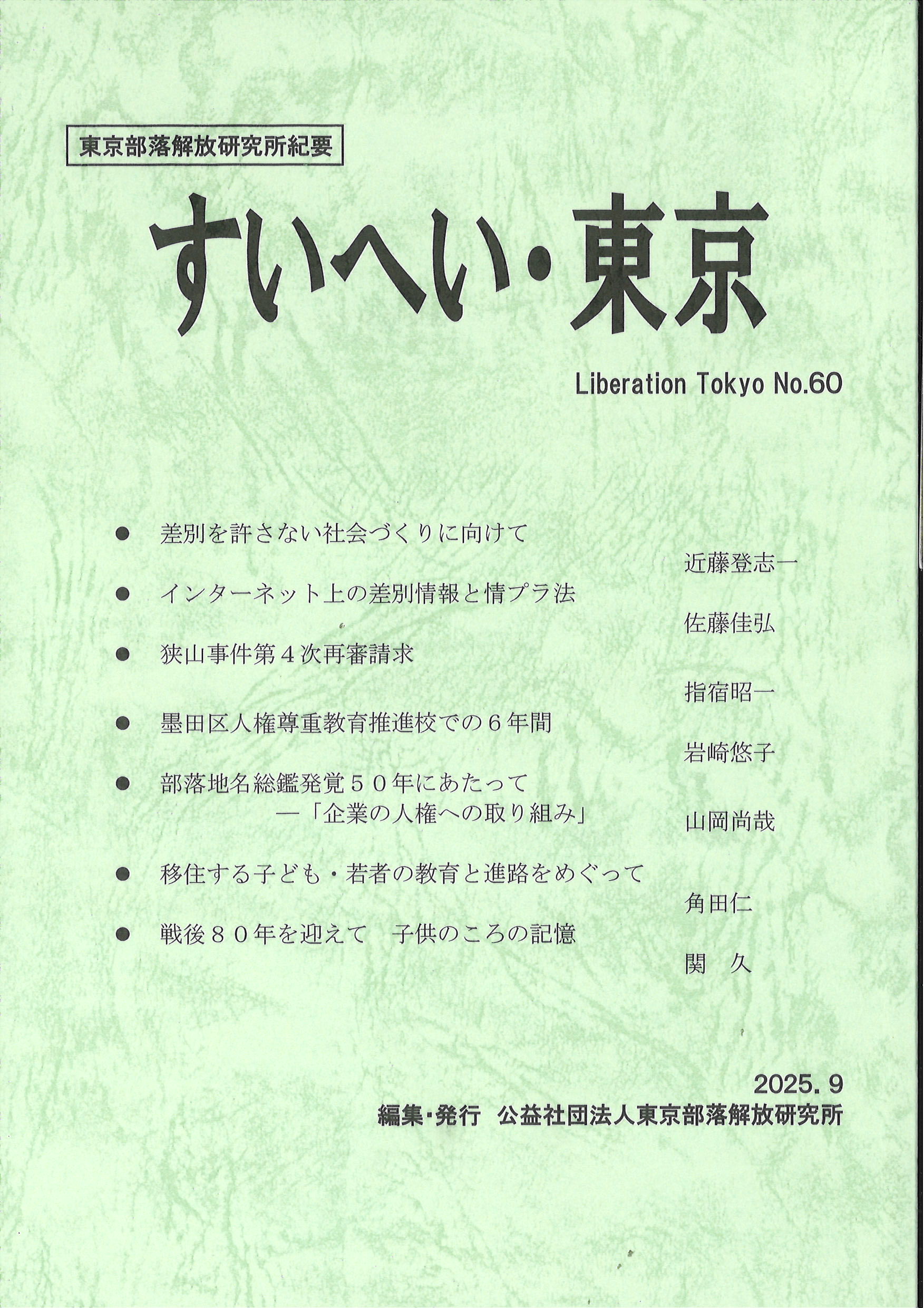 東京の部落差別問題を知り、考える上での入門書。東京の部落の概要、東京で起きた部落差別事件の紹介、東京の部落に生きる人々の紹介、共に取り組みを進める様々な団体の紹介、東京の部落の歴史など東京の部落問題を考える上で必要なことを網羅しています。学習、研修等にお役立てください。