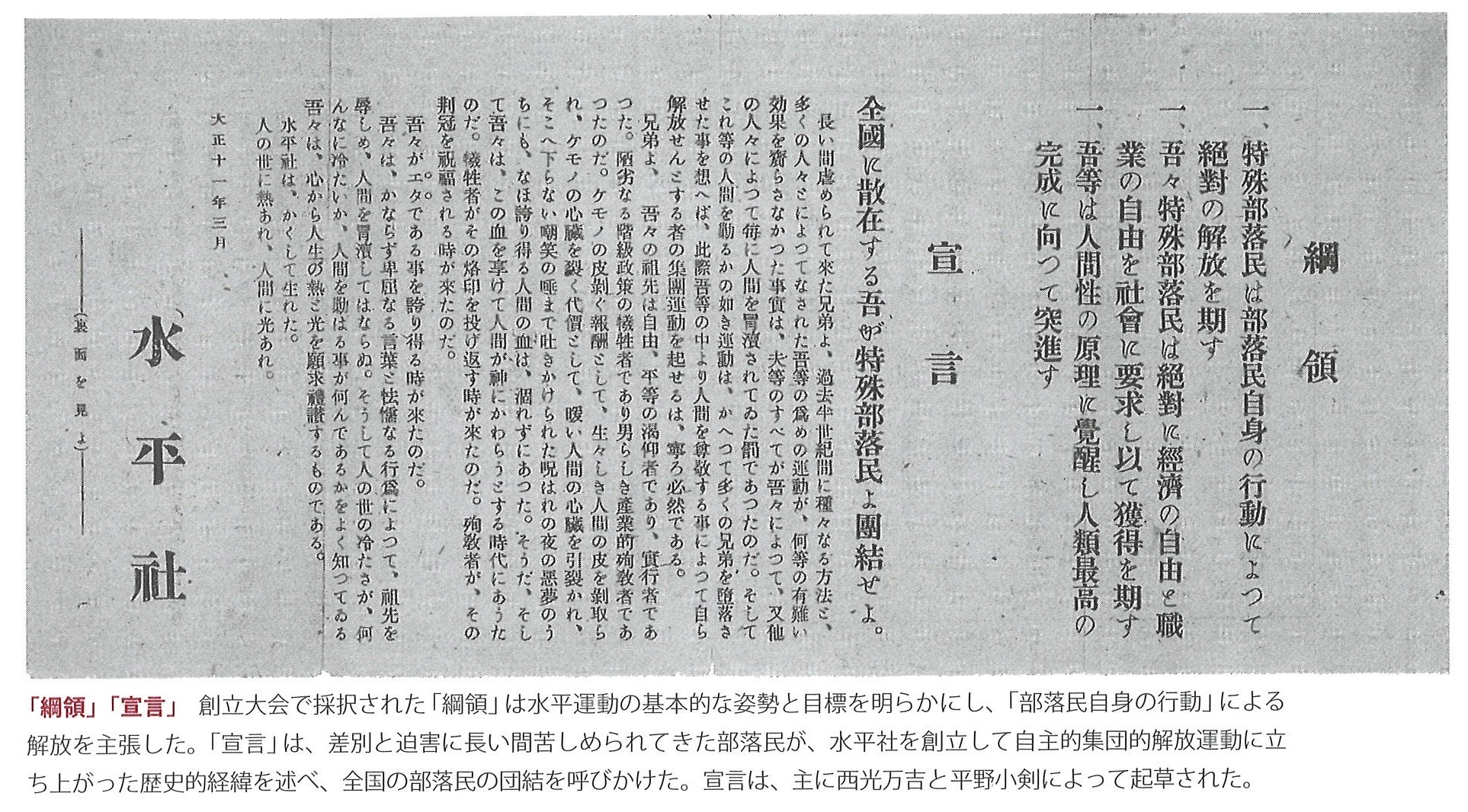 1922年3月 全国水平社創立…綱領・宣言