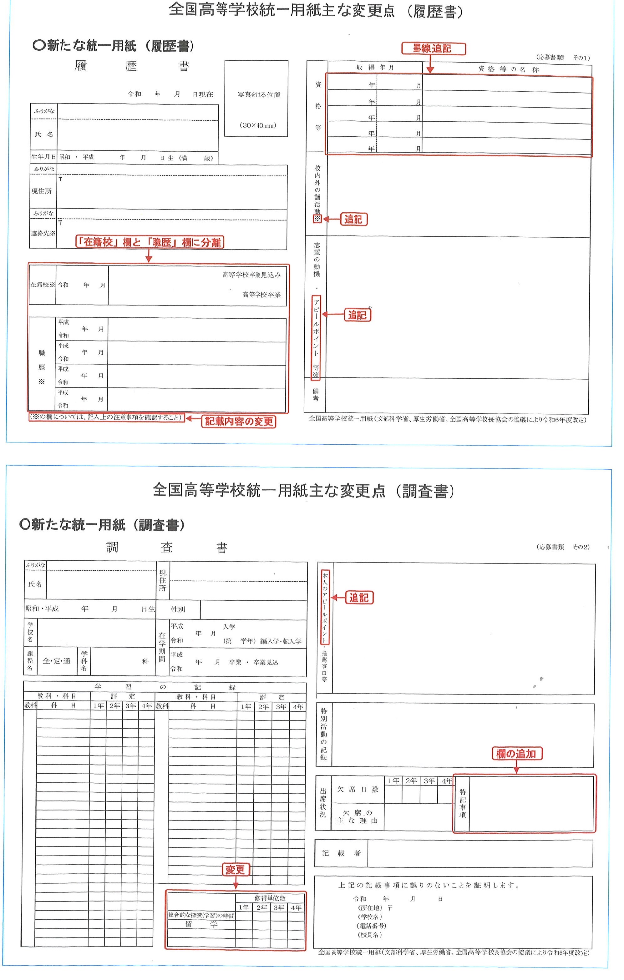 2025年2月 全国統一応募用紙改定…「性別欄」の削除など 1996年3月、2005年3月にも改定